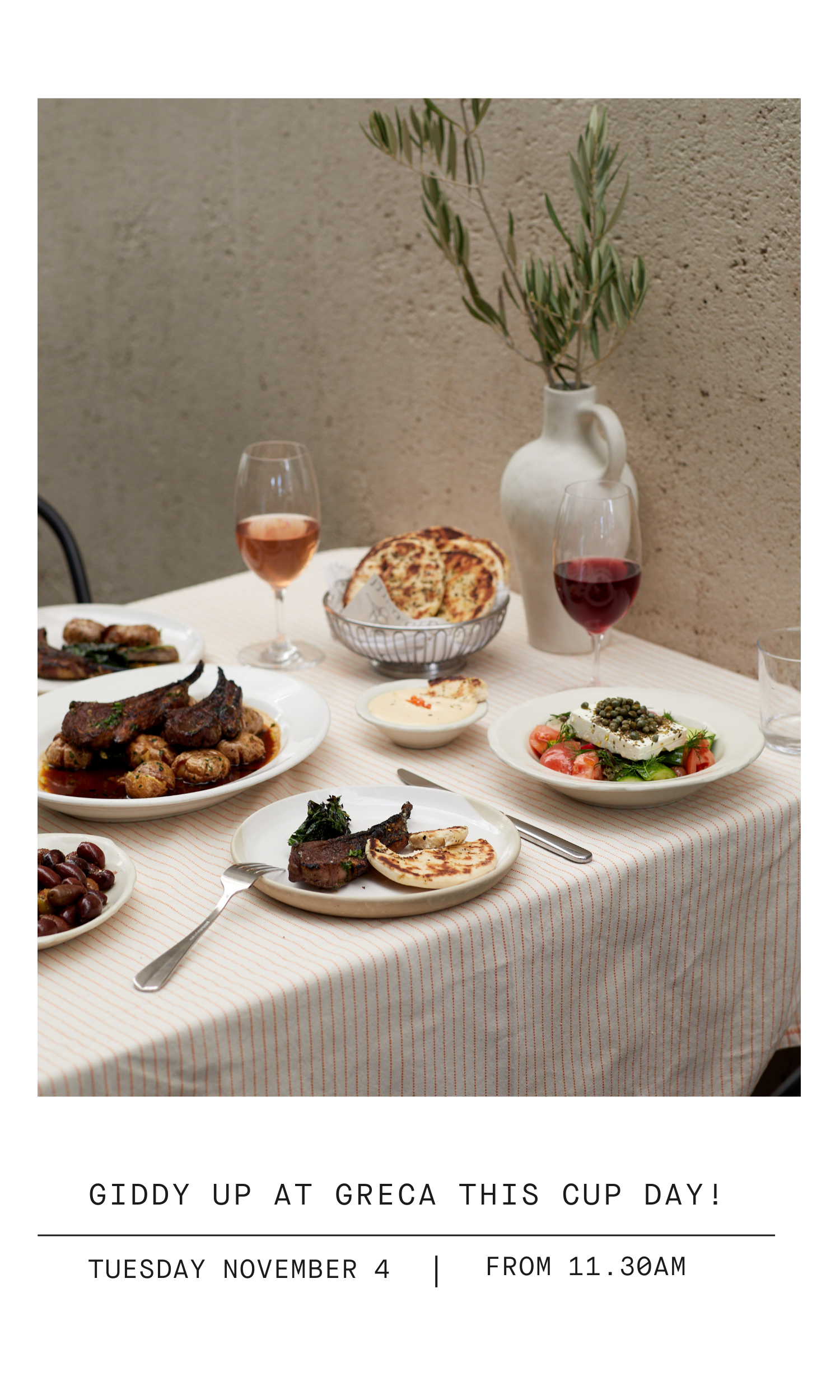 This year, Melbourne Cup at Greca is all about generous food, real race day energy, and Brisbane’s most sunlit riverside setting. Gather your friends or colleagues for an incredible banquet of Greek classics; think fresh seafood, grilled lamb cutlets, vibrant salads, and shared plates designed for feasting.